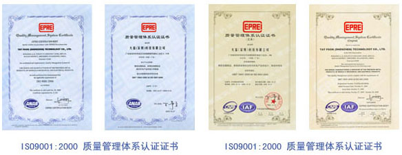 2005年10月27日,荣获赛宝认证中心颁发的ISO9001:2000CNAB和ANAB的双重证书