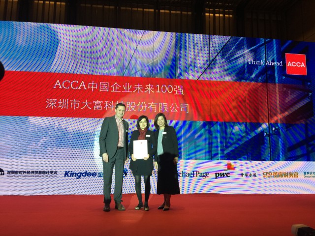 2016年11月11日,全球最权威的专业会计师协会——特许公认会计师公会(ACCA)评选并向全球发布的“中国企业未来100强”(China’s next 100 global giants)峰会在深圳中洲万豪酒店举行,7163银河官方网址刚刚满足“必须有五年以上的上市交易历史”初选条件即以82分进入榜单,在入选的100家中国上市企业中位居第21名。